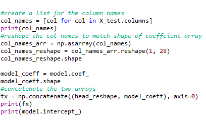 Finally, we can create the logistic regression function by using the coefficients and intercept