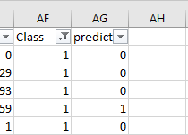 Attach the predictions to the original dataset and export. We now have two fields. The original "Class" field and the new "predict" field